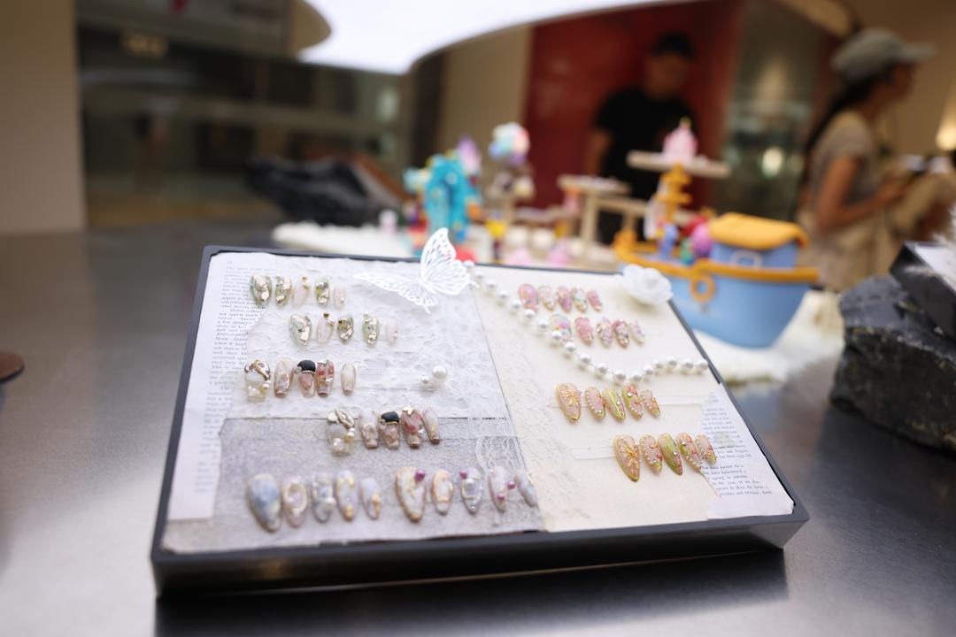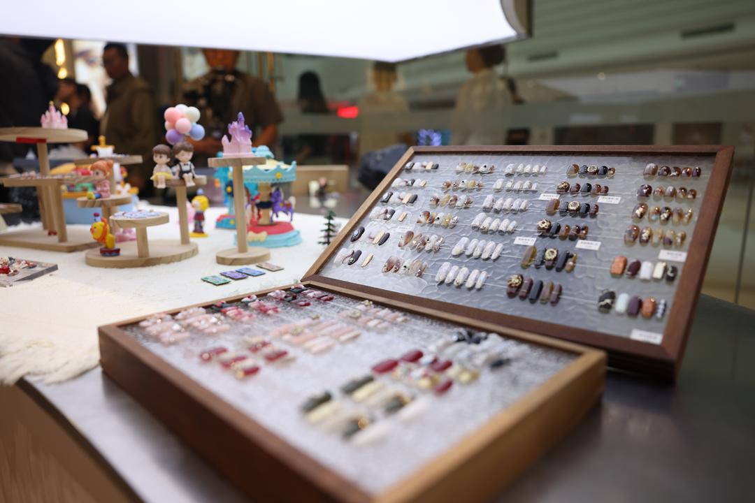 产业的蓬勃生长,也悄然改变了当地人的生活轨迹。如今,5万名东海“宝妈”成为这个产业的核心力量。她们不必远离家庭,只需在家中支起一方工作台,就能用双手创造价值:指尖蘸取甲油胶,几笔水墨晕染便让“江南烟雨”凝于甲片;细描青花缠枝纹,青白底色间透出古韵;调合青黛、赭石等雅致配色,勾勒出梅兰竹菊的姿态。