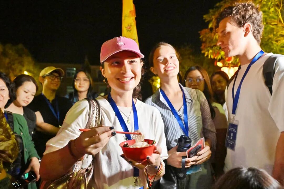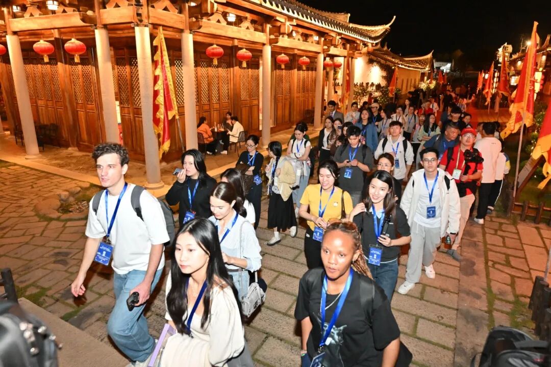 10月30日晚,湄洲岛天妃故里遗址公园张灯结彩、热闹非凡,来自法国、意大利、俄罗斯、肯尼亚、泰国、日本等16个国家的“Z世代”青年代表来到这里参加游园活动,在参观民俗表演、体验非遗项目,感受妈祖文化魅力。