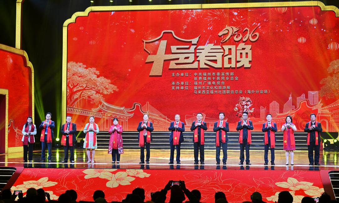 万马奔腾春潮涌,四海同福一家亲。1月20日,2026福州十邑春节联欢晚会在福州海峡文化艺术中心完成录制。本届晚会由中共福州市委宣传部、世界福州十邑同乡总会联合主办,福州广播电视台承办,福州市文化和旅游局、马来西亚福州社团联合总会、华人头条支持,采用“福州主会场+马来西亚吉隆坡分会场”双会场模式,将于农历除夕面向全球播出。