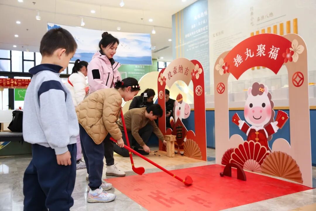 本次活动在非遗馆专业讲解员和工作人员的带领下开启。在“导览研学·非遗初识”环节,古琴演奏家指尖流淌出悠扬琴音,少年演员献上刚劲有力的武术表演,讲解员结合春节习俗展开互动式讲解,非遗技艺和传统艺术相映成趣,让孩子们从“看热闹”变成“懂门道”,为体验活动筑牢了知识根基;在“古韵游艺·欢声满堂”环节,投壶纳吉、捶丸聚福气等传统游戏,复原了古代春节市井间的娱乐活动,让侨胞家庭体验纯粹的古典乐趣;在“戏法研赏·古艺奇观”环节,讲解员进行非遗科普,用通俗语言讲解其历史渊源和“门子”(秘密)背后的古人智慧,让专家和孩子们在高潮迭起的观赏体验中,感受非遗的娱乐性与智慧性;在“马到成功·小飞马玩偶设计”环节,专业老师们分步教学,各家庭根据定制好的小马模版,尽情发挥想象力,为小马增添眼睛、尾巴、图案等,亲手完成一件基于农历新年美好寓意的创新产品设计,体验传统与创新的意义。活动现场还安排了“市集寻趣·年味带回家”环节,侨胞家庭手持非遗探访手册,在非遗市集里打卡云锦小件、金箔工艺品、木版年画等特色产品,与非遗传承人亲切攀谈、研习技艺。