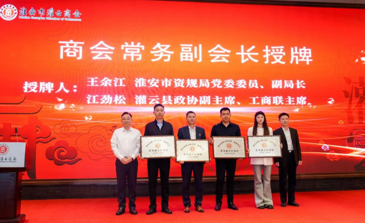 【加拿大共生国际传媒讯】4月18日下午,淮安市灌云商会成立大会召开,淮安市人大常委会党组成员、秘书长,机关党组书记、二级巡视员江山,淮安市委统战部副部长、市工商联党组书记、市侨办主任蔡昀,连云港市工商联党组成员、副主席王兰,连云港市工商联党组成员、副主席朱述亮,淮安市工商联党组成员、副主席、市总商会党委书记尹元兵,省工商联组织建设部一级主任科员王铁,市自然资源和规划局党委委员、副局长王余江,灌云县政协副主席、工商联主席江劲松,淮安市清江浦区政协副主席尹希海,连云港市工商联会员部部长、四级调研员王祥,淮安市总商会党委副书记、四级调研员董涛等领导出席会议。淮安市工商联会员处处长朱斌主持会议。