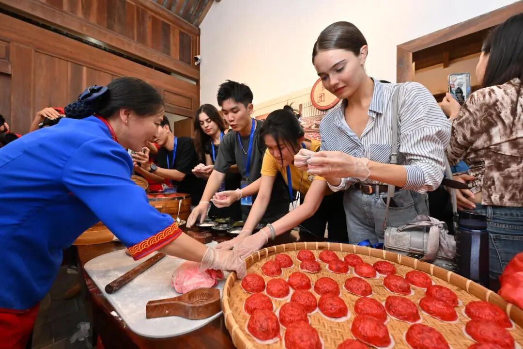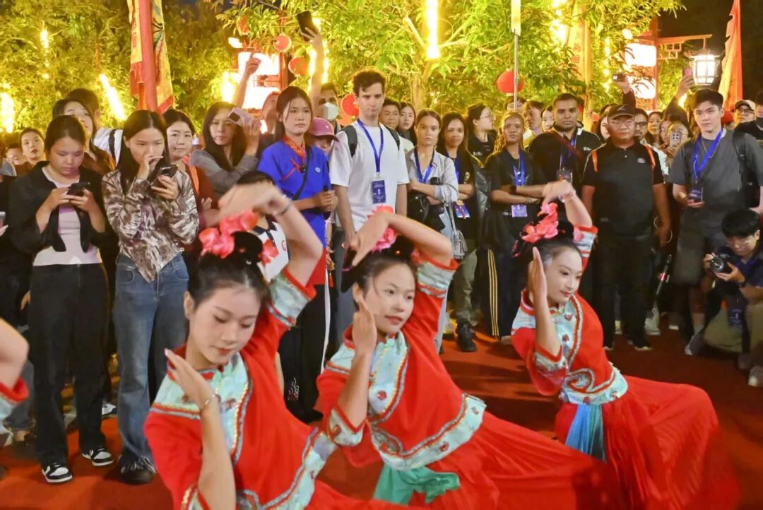10月30日晚,湄洲岛天妃故里遗址公园张灯结彩、热闹非凡,来自法国、意大利、俄罗斯、肯尼亚、泰国、日本等16个国家的“Z世代”青年代表来到这里参加游园活动,在参观民俗表演、体验非遗项目,感受妈祖文化魅力。