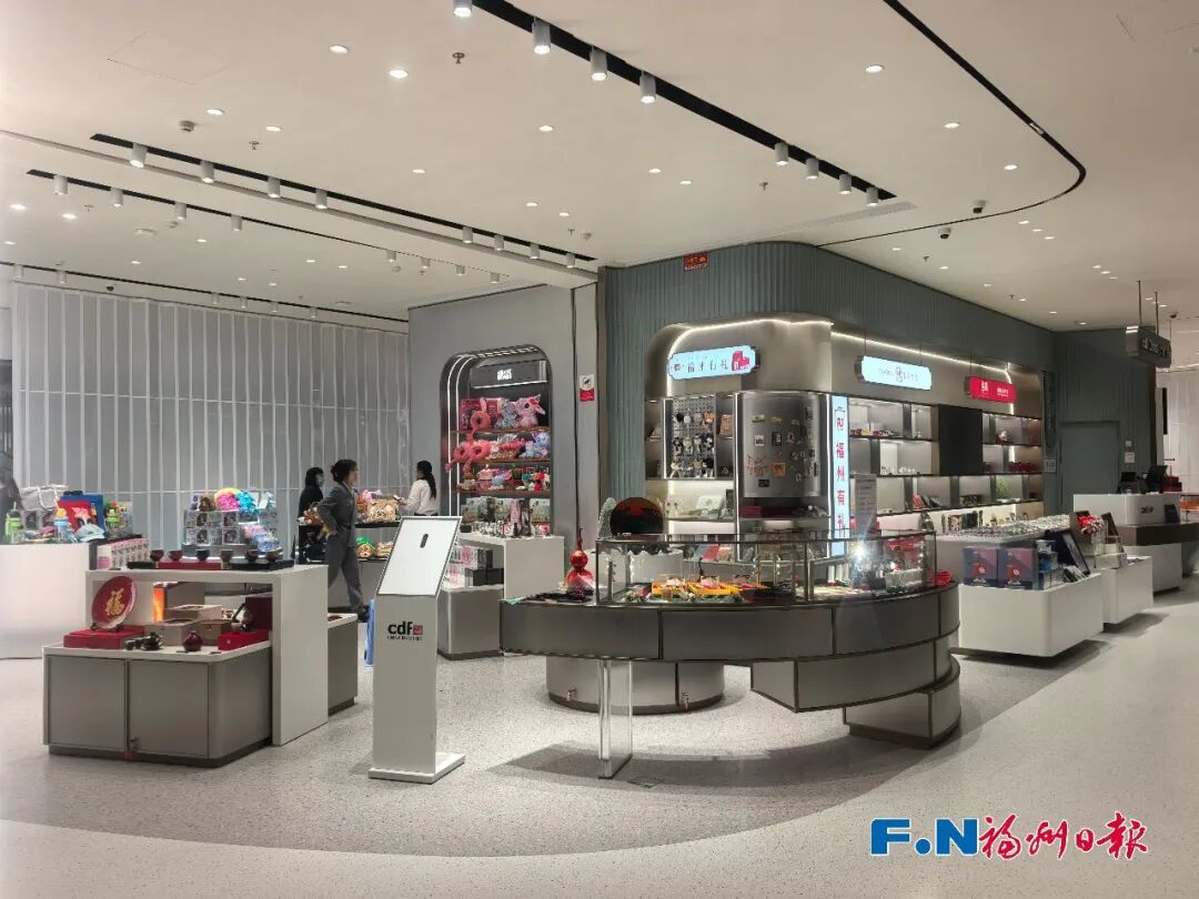 中免集团福州市内免税店相关负责人介绍,免税店占地面积857平方米,汇聚众多国际知名品牌免税商品,涵盖香水美妆、轻奢饰品、精品箱包、进口酒水等;店内匠心融入沉浸式威士忌博物馆设计,甄选全球知名产区珍稀酒款,邀请威士忌爱好者沉浸式探索琥珀琼浆的独特魅力与文化底蕴。同时,这里集结了 Harry Potter、Care Bears、飞天小女警、猫和老鼠、台湾几米等人气潮玩周边,更有承载“三宝三绝”非遗底蕴的福州特色商品。