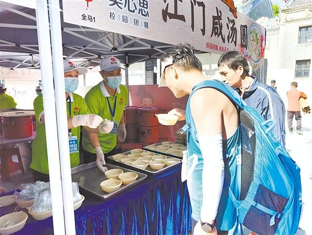 而全马赛后最具人文温度的补给区,竟设在百年古建筑新会书院内。跑者在“小小讲解员”的带领下,漫步于青砖灰瓦间,聆听城市记忆。