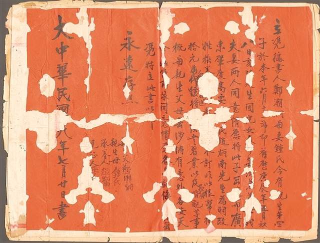 那份承载着骨肉深情与家国大义的契约书,正文仅淡淡写着“儿女多、无法兼养”,刻意避开“鬻子救国”的沉重真相;契约书背面,却写下“血书”“老者安之,少者怀之”的字样,寥寥数字,藏尽为人父母的万般不舍与舍小家为大家的决绝大义。