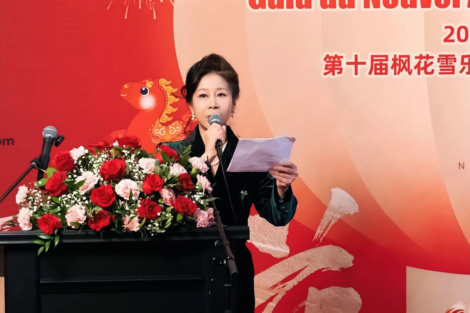 枫花雪乐春晚走品质路线,在选品与内容输出上严格把控,不断提升艺术水准,弘扬非遗之光,赋能文化之美,很荣幸得到了魁北克孔子学院的加持。院长荣萌是蒙特利尔华社文化教育界的元老,亦担任蒙特利尔佳华学校校长及魁北克中文学校协会会长,一个勤恭致力、德行温暖的前辈和楷模。虽然我们相处的时光不是很多,但每次与她相见,都让人如沐春风,心生美好与温馨。出身世家的荣院不仅品味卓然,艺术情怀也颇令人赞叹,那一年的佳华学校25周年庆晚会,我们有幸受邀欣赏,晚会节目的含金量很高,除了上海京剧院京剧名家傅希如、赵群伉俪的传神演绎外,那首《娲皇颂》令我瞬即种草,至今萦绕耳际,挥之不去,能在茫茫乐海中甄选出上品佳曲,功力可见一斑;心若菩提的荣院播种福田已然一种常态,2008年汶川地震,她组织佳华学校捐款两万加币,及时为灾区送去了温暖和关怀。随后,佳华数次慷慨捐款国内救助于火灾和水灾。如此光而不耀,润物无声。知性美的荣院还有诙谐幽默的一面,在魁北克中文学校协会年会上,荣式调性自成一格,妙语连珠,会场上常常令人忍俊不禁。魁北克孔子学院出品的器乐及京剧节目均为专业打造,水准上乘,每年在枫花雪乐春晚上都有精彩呈现。